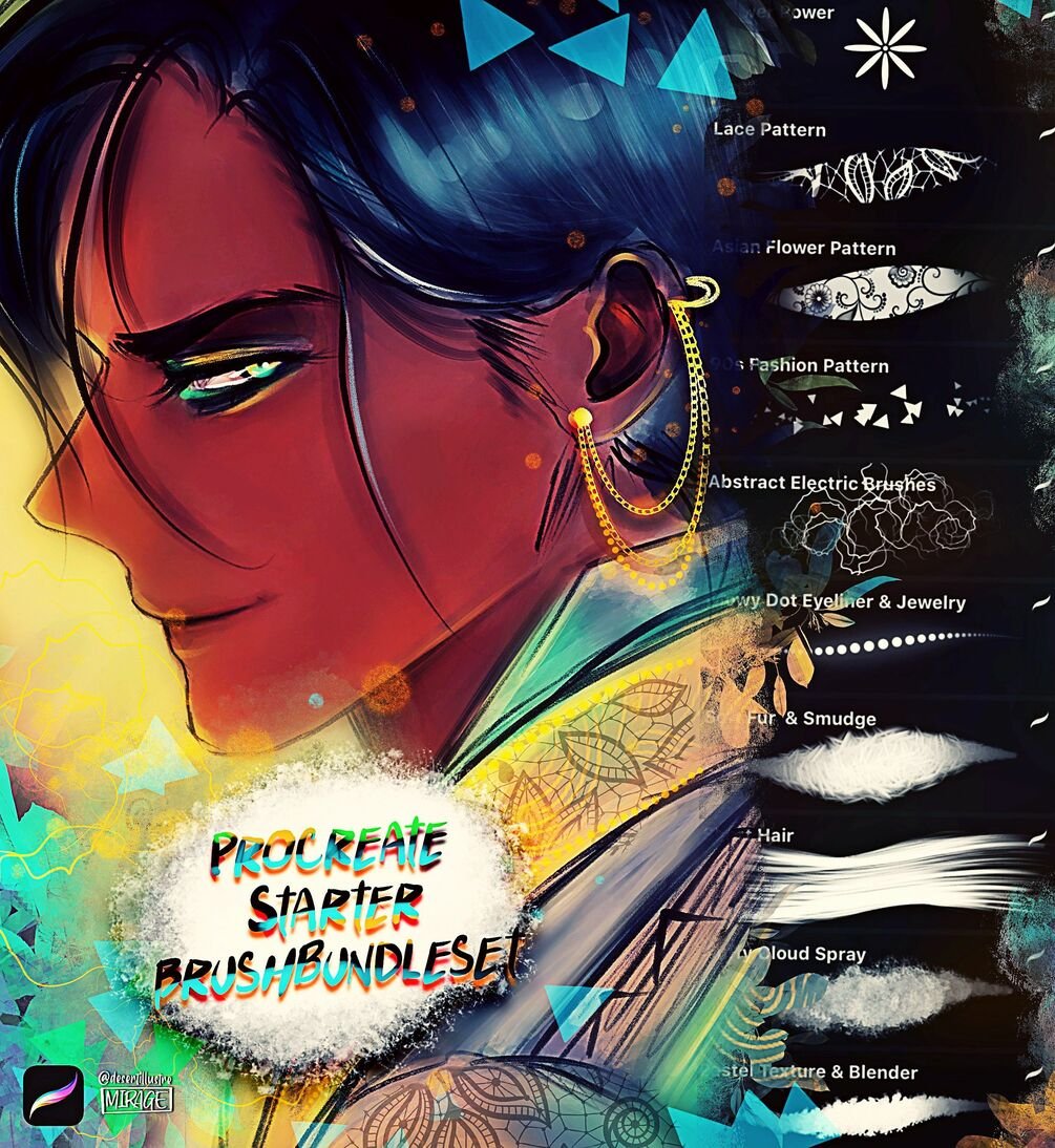 This brushset comes with more than 20 brushes, designed for your Procreate start. Makeup, hair, textures, sketching and many more!